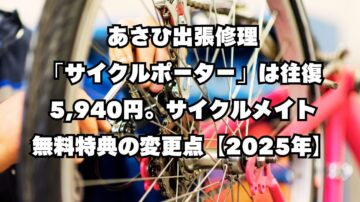 あさひ出張修理「サイクルポーター」は往復5,940円。サイクルメイト無料特典の変…