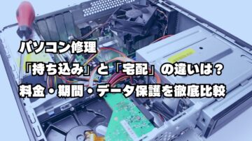 「急にパソコンが壊れた!」「修理に出したいけど、重いパソコンをお店に持っていくべきか、宅配便で送るべきか…」 パソコンの故障は突然やってきます。そんな時、修理方法の「持ち込み」と「宅配」のどちらを選べば良いか、迷ってしまいますよね。 この記事では、パソコンの「持ち込み修理」と「宅配修理」について、それぞれのメリット・デメリット、料金差、修理期間、そして最も重要な「データ保護」の観点から、どちらを選…