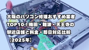 「仕事で使うパソコンが急に起動しない…」 「大学のレポート中に液晶を割ってしまった…」 大阪のような大都市ではパソコン修理業者が無数にあり、「結局どこに頼めばいいの?」と迷ってしまう方も多いのではないでしょうか。 料金が安いだけで選んで失敗したり、即日対応のはずが何日も待たされたりするケースもあります。 この記事では、大阪府内でパソコン修理を依頼する際のおすすめ業者を、以下の観点から総合的に判断し…