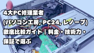 「パソコンが壊れたけど、修理業者が多すぎて選べない…」 「『パソコン修理24』『パソコン工房』『レノーブ』って、結局どこが一番いいの?」 パソコン修理を検討する際、これらの主要な修理業者の名前を目にすることは多いでしょう。しかし、各社が「最安」「最速」を謳う中で、自分にとって本当に最適な業者がどこなのかを見極めるのは困難です。 この記事では、元記事の情報に基づき、主要なパソコン修理業者である「パソ…