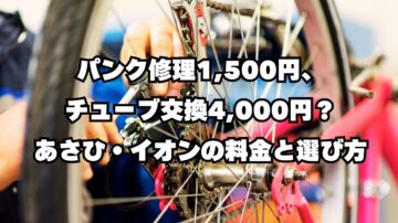 自転車がパンクした時、「パンク修理(パッチ補修)」と「チューブ交換」の2つの選択肢があり、どちらを選ぶべきか、料金はどれくらい違うのか悩んだことはありませんか? 「パンク修理だけをお願いします」と伝えたのに、お店の人から「チューブ交換が必要です」と言われ、想定より費用が高くなって驚いた経験がある方も多いかもしれません。 この記事では、パンク修理とチューブ交換の具体的な作業内容と料金相場、そして「ど…