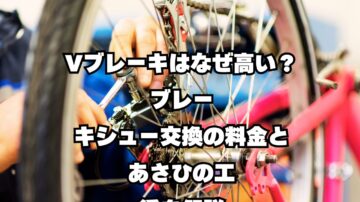 「最近ブレーキの効きが悪い…」 「ブレーキをかけると『キーキー』と嫌な音がする」 それは、ブレーキシュー(ブレーキゴム)の摩耗が原因かもしれません。ブレーキシューの交換は、安全な走行を維持するために不可欠なメンテナンスです。 費用は、主に「ブレーキシュー本体の部品代」と「交換・調整の作業工賃」の合計で決まります。特に、クロスバイクなどに使われるVブレーキやディスクブレーキは、一般車(ママチャリ)よ…