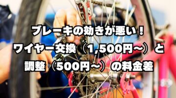 「最近ブレーキの効きが悪い」「レバーが緩くなった」と感じていませんか?それはブレーキワイヤーの劣化が原因かもしれません。 自転車のブレーキワイヤー交換の総費用は、「工賃」と「ワイヤー部品代」の合計額となります。一般的な相場は、部品代込みで1本あたり ¥1,500から¥3,000程度ですが、スポーツ車で高性能ワイヤーを使用したり、アウターケーブル(外側のカバー)も同時に交換したりする場合、¥3,00…