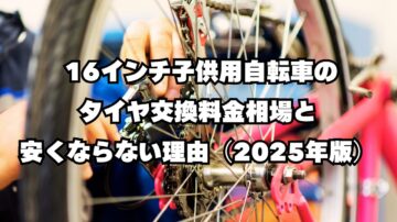 「16インチの子供用自転車なのに、タイヤ交換代がママチャリと同じくらいかかるのはなぜ?」 「ミニベロ(小径車)のタイヤ交換をしたいけど、相場はいくらなんだろう?」 16インチの自転車は車輪が小さいため、修理も簡単で安く済むように思えますが、実際には一般的な自転車(26インチなど)と料金が変わらないか、場合によっては割高になることもあります。 この記事では、16インチの子供用自転車や小径車(ミニベロ…