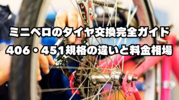 「おしゃれなミニベロを買ったけど、タイヤ交換が思ったより高い…」 「20インチのタイヤを交換したいのに、"規格が違う"と断られた…」 ミニベロ(小径自転車)のタイヤ交換は、一般的なママチャリ(シティサイクル)とは全く異なる、特殊な注意点が数多く存在します。特にスポーツ走行を意識したモデルの場合、その費用は一般的な自転車よりも高額になる傾向があります。 この記事では、ミニベロのタイヤ交換料金の相場と…