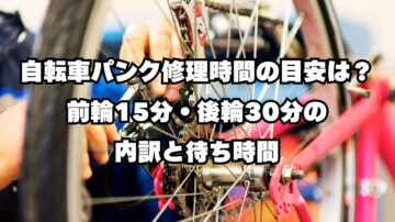「自転車がパンクした!修理にどれくらい時間がかかるんだろう?」と不安になっていませんか? 自転車のパンク修理にかかる時間は、修理内容や店舗の混雑状況によって大きく異なります。一般的に、軽度のパンク修理(パッチ補修)のみであれば15分から30分程度で完了することが多いです。 しかし、修理を依頼してから作業に取り掛かるまでの「待ち時間」を考慮しないと、「すぐに終わると思ったら数時間待たされた」というこ…