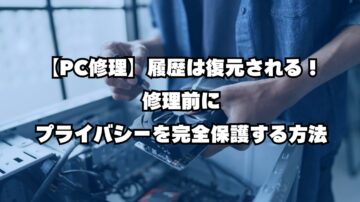 【PC修理】履歴は復元される!修理前にプライバシーを完全保護する方法 「パソコンを修理に出したいけれど、ブラウザの履歴や保存したパスワードを見られたらどうしよう…」 パソコンを修理に出す際、個人情報や閲覧履歴の漏洩は非常に大きな懸念事項です。修理業者は、たとえパスワードロックがかかっていても、ハードディスク内のデータ(ファイル)を閲覧可能であるため、細心の注意を払う必要があります。 この記事では、…