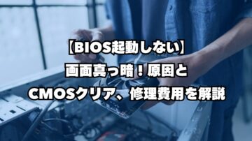 【BIOS起動しない】画面真っ暗!原因とCMOSクリア、修理費用を解説 「パソコンの電源は入るのに、メーカーロゴすら表示されず画面が真っ暗…」 「F2キーやDeleteキーを押しても、BIOS設定画面に入れない」 BIOS(バイオス)は、OS(Windowsなど)が起動する前にハードウェアを管理・制御する、パソコンの最も基本的なプログラムです。このBIOSが起動しない場合、パソコンはOSを読み込む…