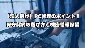 【法人向け】PC修理のポイント!保守契約の選び方と機密情報保護 概要 法人がビジネス用パソコンの修理を依頼する際、個人のPC修理とは比較にならないほど多くの点に配慮が必要です。 単に「壊れたものを直す」だけでなく、「業務の継続性」「セキュリティの確保」「コストの明確化」という3つの要素が、企業の事業継続計画(BCP)と密接に関わってきます。 この記事では、法人がPC修理を依頼する上で不可欠な「保守…