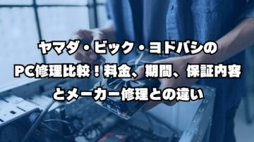 ヤマダ・ビック・ヨドバシのPC修理比較!料金、期間、保証内容とメーカー修理との違い 「パソコンが壊れたけど、購入した家電量販店に持っていけばいい?」 「ヤマダ電機、ビックカメラ、ヨドバシカメラ、どこに頼むのが一番いいの?」 「メーカー修理と何が違う?データは消えちゃうの?」 パソコンが故障した際、購入した大手家電量販店に修理を依頼するのは自然な流れです。しかし、3社のサービスには大きな違いがあり、…