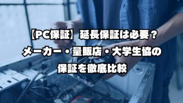 【PC保証】延長保証は必要?メーカー・量販店・大学生協の保証を徹底比較 「パソコンの延長保証、入るべきか迷う…」 「メーカー保証と家電量販店の保証って何が違うの?」 パソコン購入時に必ず案内される修理保証や延長保証。加入すべきかどうかは、パソコンの価格、使用目的、そしてユーザーの過失による故障リスクの高さによって大きく変わります。 結論から言うと、高額なパソコン(10万円以上)や、持ち運びが多く破…