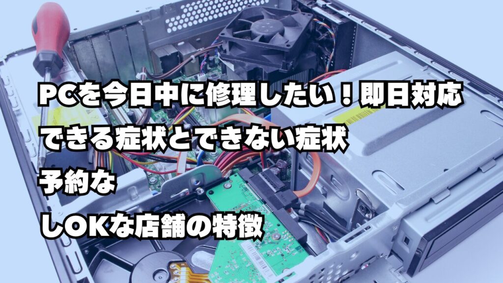 この記事では、パソコンを即日修理できる条件とできない条件、対応可能な症状、そして東京・大阪など主要都市で即日対応してくれる店舗の特徴について、詳しく解説します。